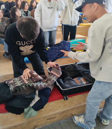 整理行李箱是当代大学生必不可少的一项生活技能,小小的行李箱如何装下衣裤、鞋子等生活用品也需要经过反复实践。本次比赛不仅锻炼了同学们的生活实践能力,也是对其良好生活习惯的一种检验。