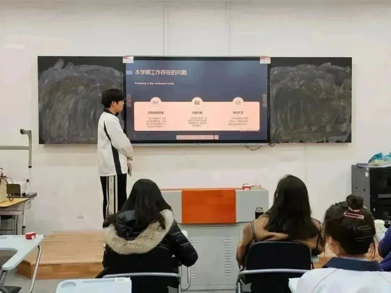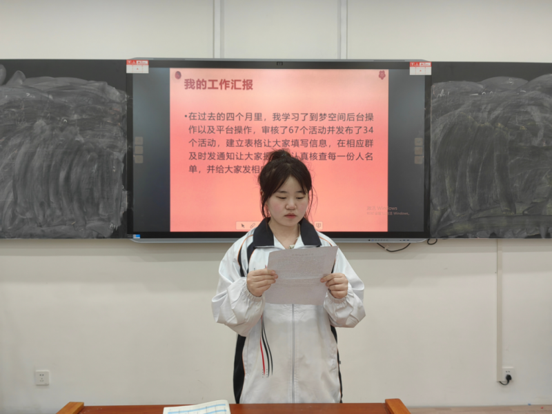 系部团总支学生会各部门负责人采用PPT演示的方式依次进行述职,就2023-2024学年秋学期以来的个人履职情况、部门工作开展及成效、存在的问题及原因等内容进行现场汇报。各负责人总结经验教训,针对部门的不足之处,提出了相应的整改措施。评委老师秉持实事求是的原则,围绕思想、学习、工作情况对述职人员做出客观综合的评价。