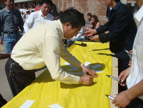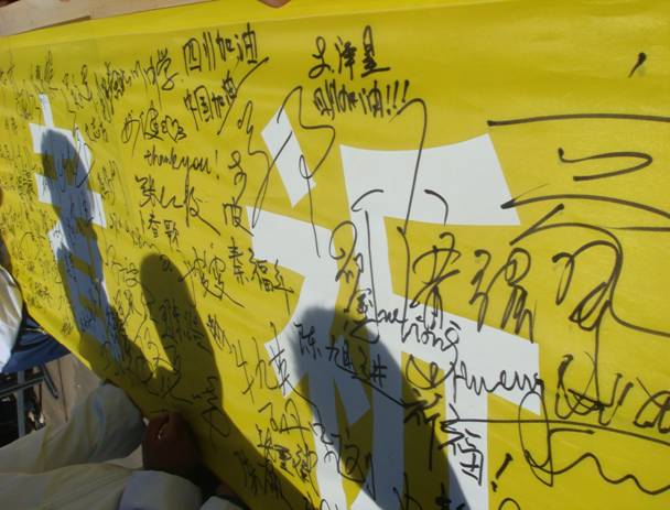本次活动特邀张家口电视台、张家口晚报进行宣传报道。学院领导和高新区民政局有关领导亲临活动现场,陈院长代表学院讲话并带领全体人员向5.12大地震受难同胞表示哀悼,同时对广大学生提出了殷切的希望和明确的要求。活动中还邀请到震后由我市大北车行安排就业的三十名来自四川德阳灾区的受灾同胞,他们与我系学生共同表演了《感恩的心》,并接受了best365和高新区民政局共同捐赠的慰问品,灾区同胞因此倍感温暖。随之,在《让世界充满爱》的音乐声中开始了“为生者祈福、为逝者哀悼”万人签名活动,由全校师生在长卷上献出自己的爱心,送上自己对灾区人民的祝福。