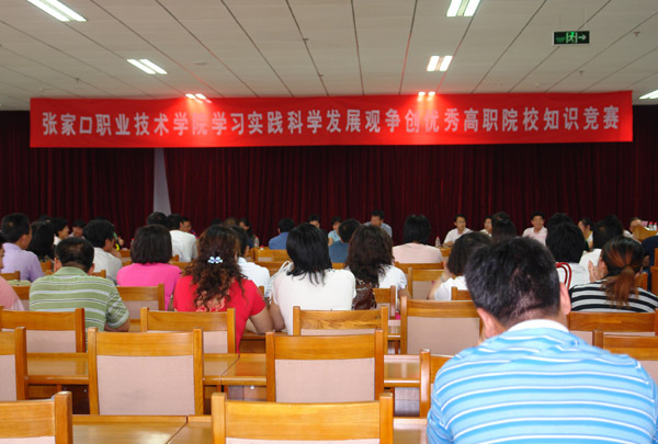 为进一步激发学院党员干部学习实践科学发展观的积极性,检验学习成效,6月18日下午,学院举办了“学习实践科学发展观,争创优秀高职院校”知识竞赛,入围决赛的五支代表队是通过笔试从19支参赛队中产生的。