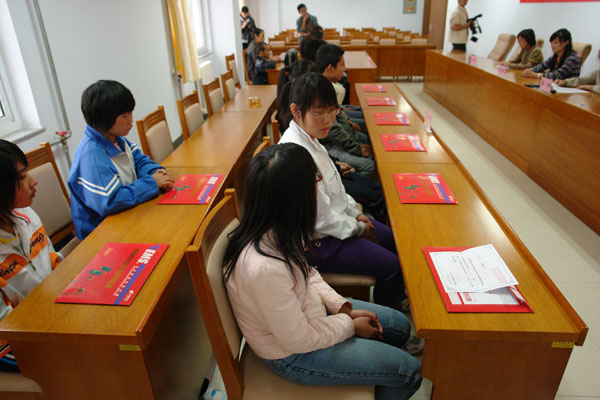 9月8日上午9时,best365足球官网2009希望工程圆梦行动在图书综合办公楼807室拉开帷幕,学院党委书记姜铭到会讲话,“张家口爱家园公益促进会”秘书长章艳萍、团市委学少部副部长赵勇琳、中国人寿保险公司张家口分公司总经理席恒峰出席了本次活动。活动由副院长陈怀勇主持。