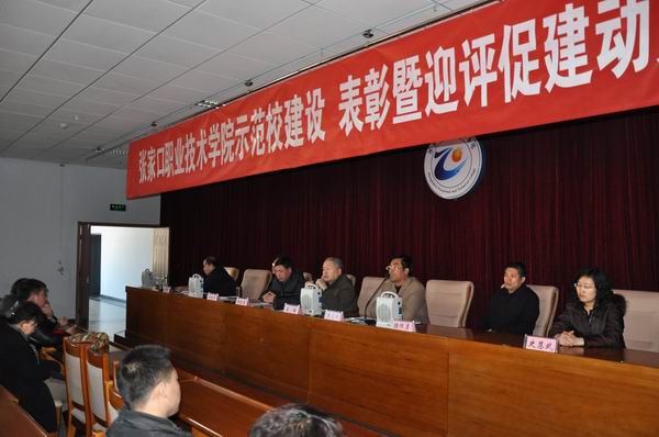 3月16日,学院在综合办公楼学术报告厅召开示范校建设表彰暨迎评促建动员大会。学院领导和全体教职工出席大会,会议由副院长宋德明主持。