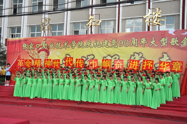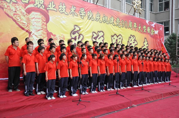 在歌咏大会上,来自全校的8支合唱队,面对鲜红的党旗,激情演唱了《祖国不会忘记》、《爱我中华》、《走进新时代》、《迎风飘扬的旗》、《国家》、《走向复兴》、《没有共产党就没有新中国》等经典红色歌曲。各代表队以嘹亮的歌声赞美我们党走过90年波澜壮阔的光辉历程,表达了对党丰功伟绩的热情传诵,抒发了大学生“传承红歌,唱响未来,永远跟党走”的豪迈之情。