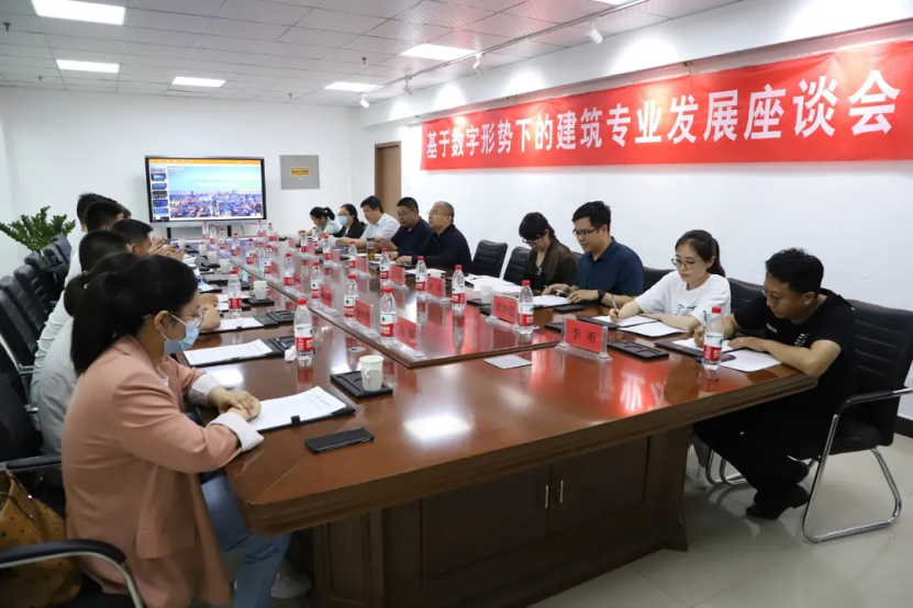 颁奖仪式后,三院校领导、大赛主要筹备人员及教师代表在best365知行楼六楼会议室召开了基于数字形势下的建筑专业发展座谈会,与会嘉宾就深化产教融合、校企合作、专业建设及资源共享等问题进行了深入交流和探讨。