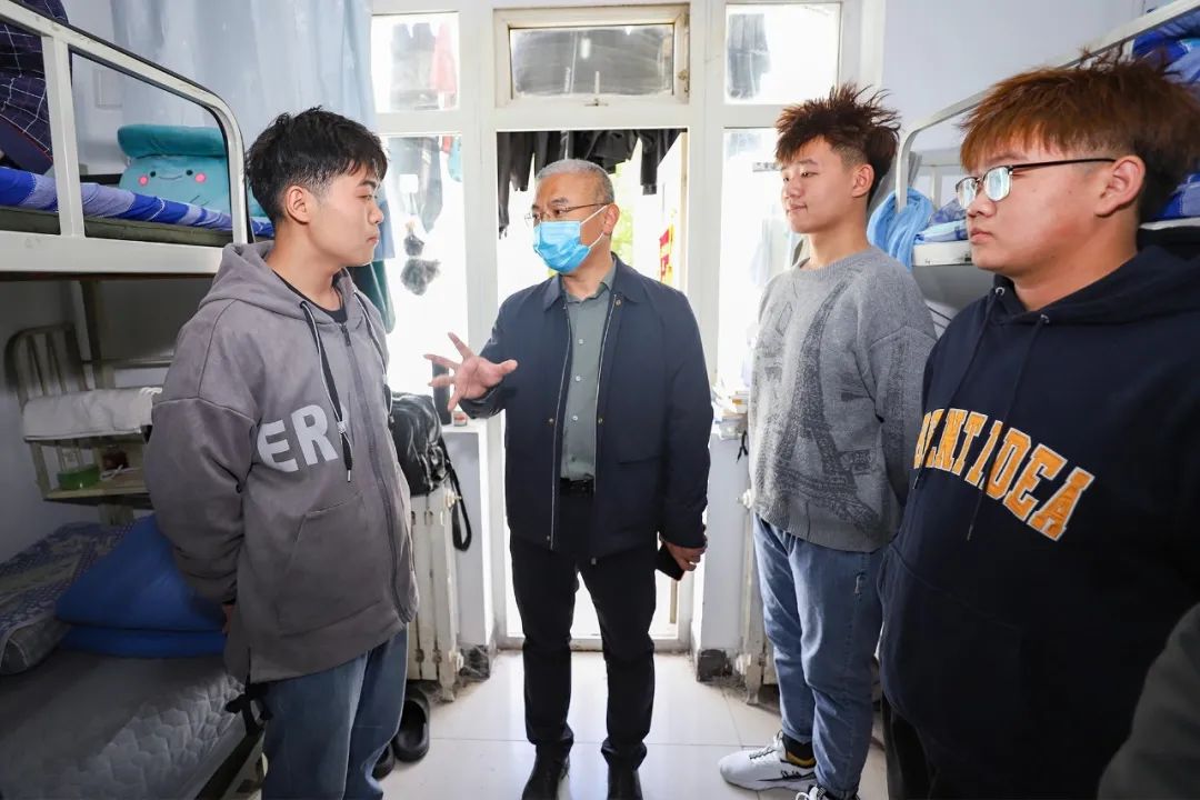 10月6日,党委副书记、院长王立军前往机电工程学院学生宿舍进行走访排查,了解学生学习生活情况,教育引导学生认清当前疫情防控的严峻形势,遵守疫情防控相关规定,加强宿舍安全管理,增强自身体育锻炼,养成良好行为习惯。