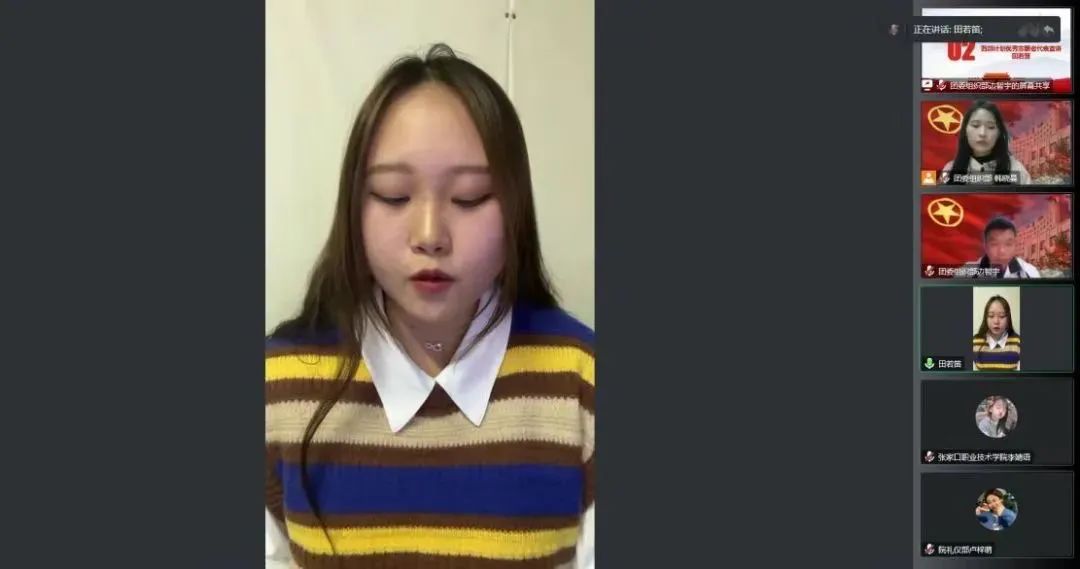 为引导和动员best365广大团员青年铭记党的关怀,向榜样学习,在第二个百年奋斗目标新征程中建功立业、发挥生力军作用,10月30日晚,学院团委举办“学习二十大 青春心向党”线上主题宣讲活动。best3652019级优秀毕业生代表田若迪、刘淼向青年大学生分享了她们在岗时的青春故事,充分发挥青年典型坚定跟党走、积极投身基层一线,在祖国和人民最需要的地方绽放青春的榜样作用。