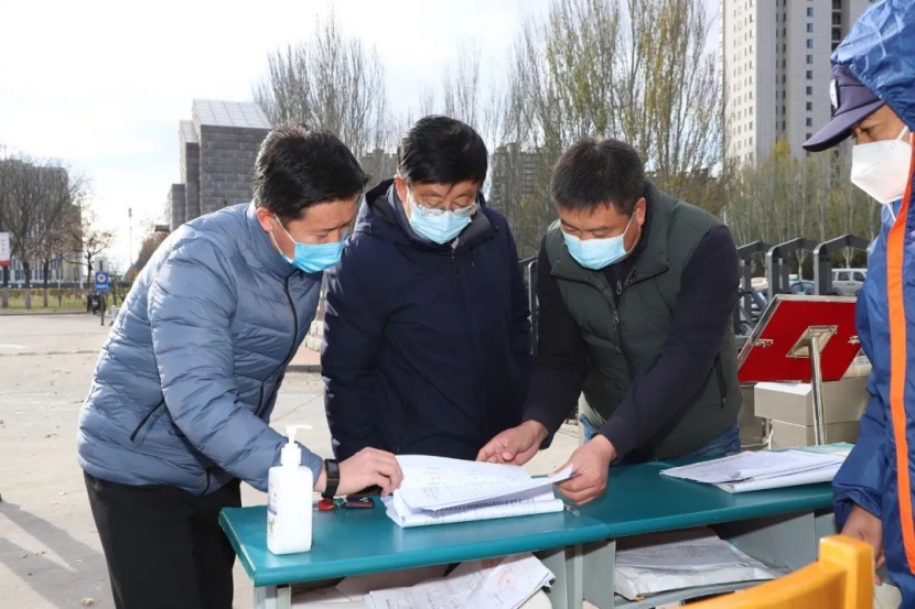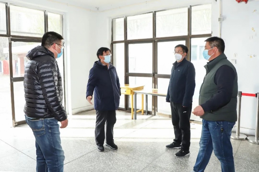 冯印涛一行先后对学院入校通道、门卫、文飨餐厅、学生公寓等场所进行了现场查看,就出入校审批、门卫登记、消杀防护、应急预案、饮食保障、学生管理等工作提出要求。