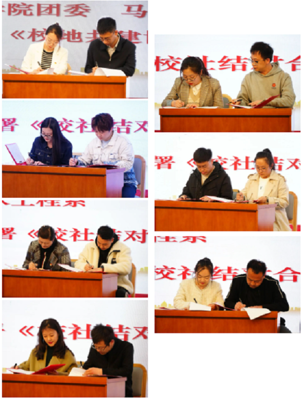 在与会人员的共同见证下,学院团委副书记李月婷与马路东街道办事处党委书记马宇哲签署《校地共建协议书》。各二级院系团总支书记与对接社区负责人签署《校社结对合作协议书》。双方郑重承诺将充分凝聚校地合力,发挥团员、团干的桥梁纽带作用,聚焦社区“急难愁盼”问题和团员青年成长成才需求,常态化、规范化、长效化组织开展志愿服务和社会实践活动。