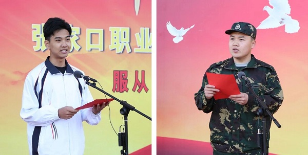 2021级军训优秀训练标兵信息工程与艺术设计学院学生胡家硕、2022级学生代表机电工程学院学生刘治泽分别作了发言,表示要以昂扬的斗志、严格的纪律和团结的精神迎接军训,将军训良好成果在今后继续传承发扬。