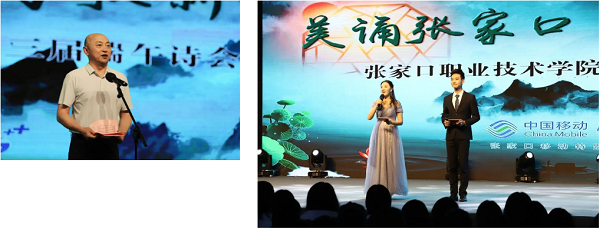 市委宣传部副部长宋向军,市文联党组书记、主席王芳,市新闻工作者协会主席、河北省燕赵文化研究会副会长刘喜,张家口开放大学党委书记杨汝明,中国移动张家口分公司党委书记、总经理张彦生,市文化广电和旅游局副局长许剑,共青团张家口市委副书记温旭春,市广播电视台副台长董峻峰,领克汽车张家口工厂校企合作经理韩志勇及来自市委组织部、河北北方学院、市作家协会、市民间文艺家协会等有关单位部门负责人应邀出席活动。学院领导冯印涛、王立军、周文胜、张东兵、张智勇与各政处室、二级院系负责人,师生代表共同观看演出,领略诗词魅力,感受诗词之美。