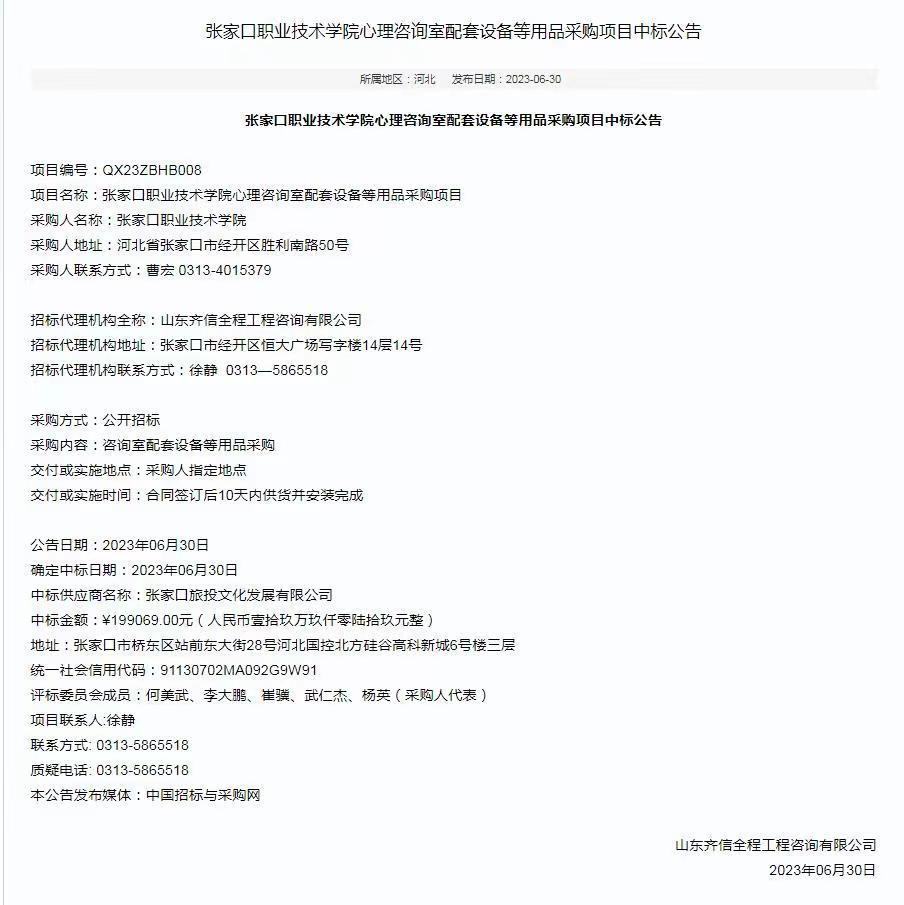 best365足球官网心理咨询室配套设备等用品采购项目中标公告