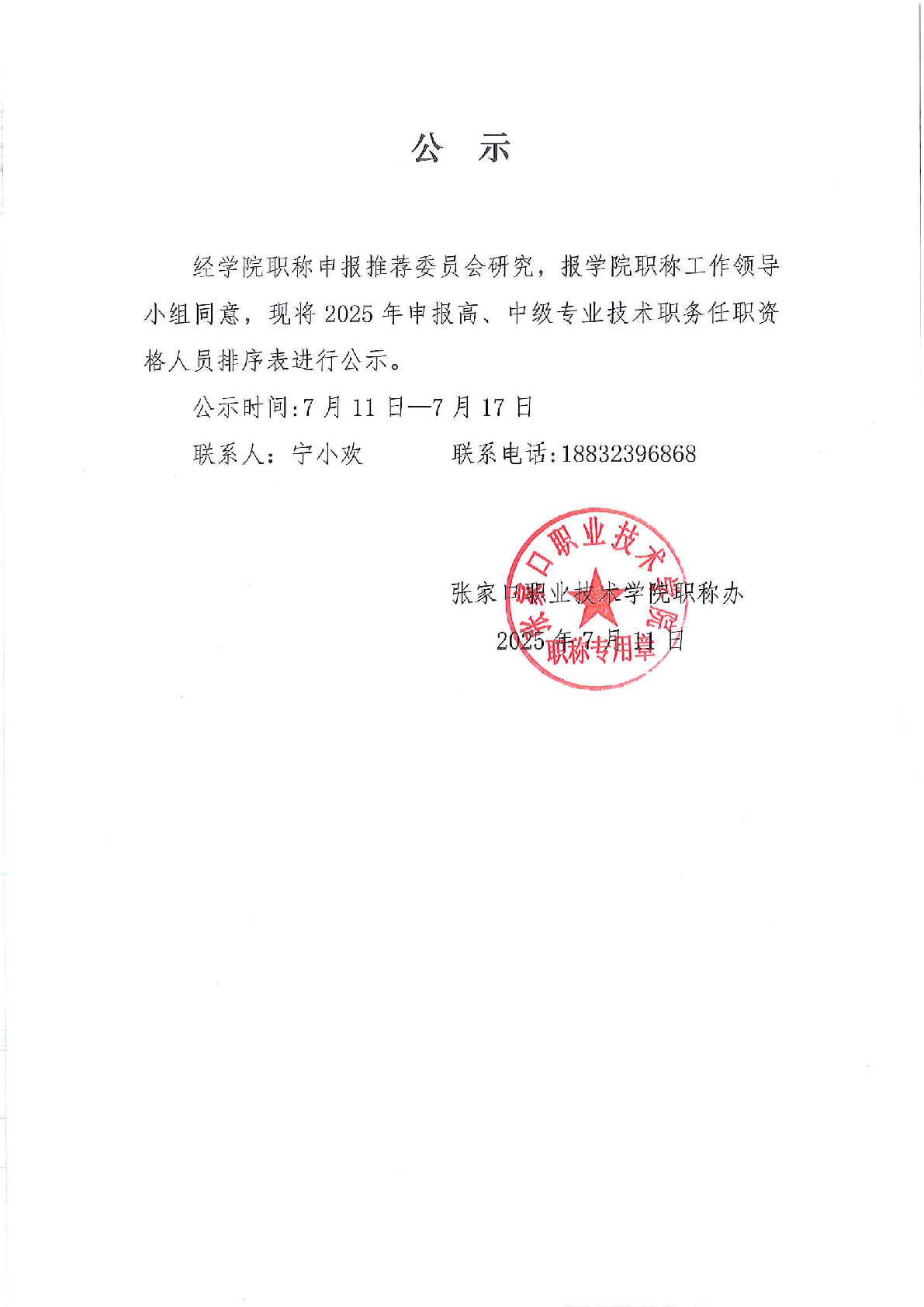 关于2025年申报高、中级专业技术职务任职资格人员量化赋分排序的公示