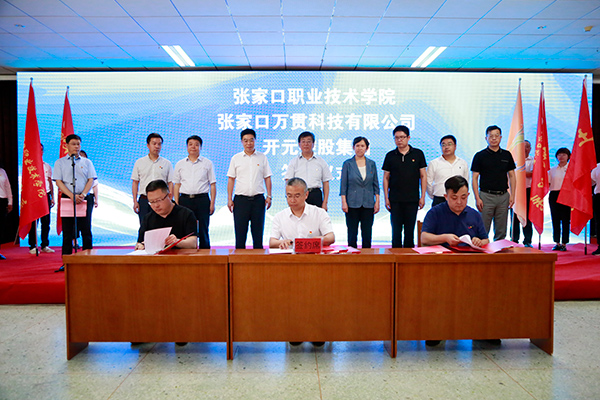 市委组织部部务委员、市高层次人服务局局长薛春雷、团市委副书记戎海广、市科学技术局副局长王玉龙、市工业和信息化局副局长张辉华、怀安县副县长周学勤、张家口高新技术产业开发区管委会副主任李旭峰、张家口南山产业集聚区管委会副主任景宇东;开元控股集团董事长侯冠夫、张家口传媒集团副总经理王哿、中油金鸿华北投资管理公司党委书记李永红、张家口中油金鸿科技有限公司总经理梁宁、领克汽车张家口工厂人才经营部长王利东等16家企业和社会团体的主要负责人及学院党委副书记杨汝明、常务副院长李炜杰、副院长胡伟奇、纪委书记周文胜共同出席仪式。