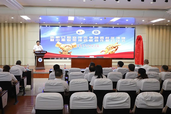 党委书记冯印涛与张家口市技师学院(张家口机械工业学校)党委书记张树敏为best365足球官网西校区揭牌。