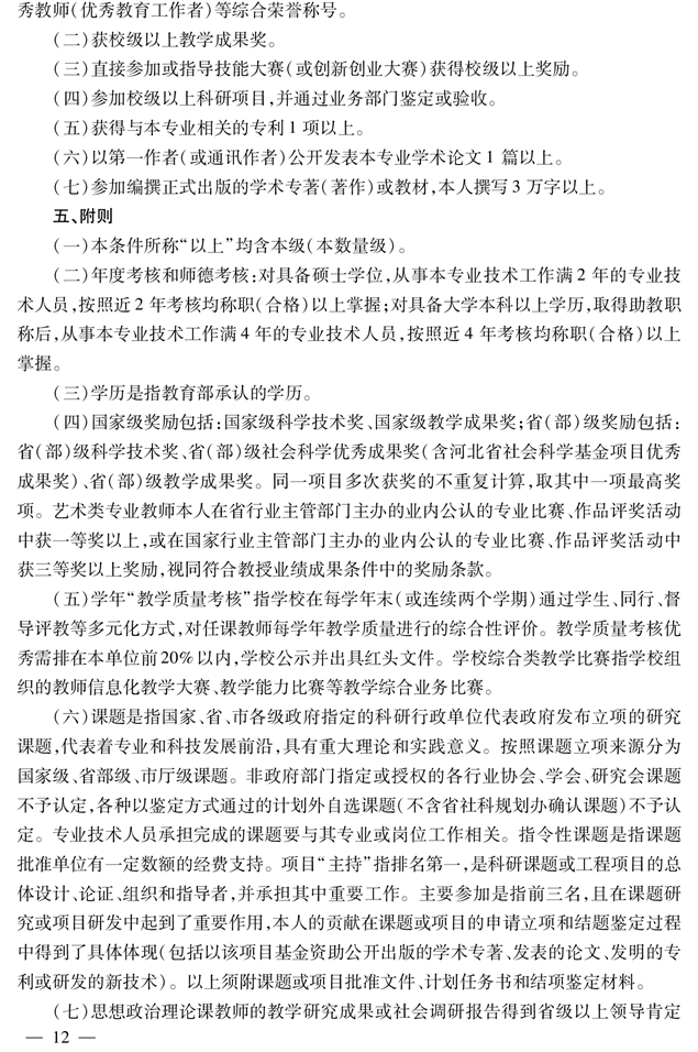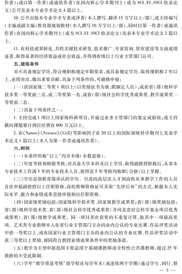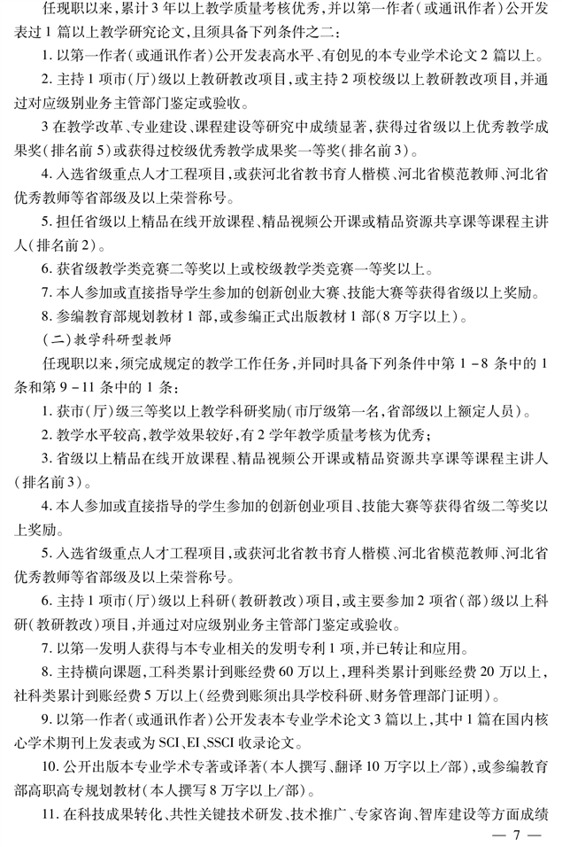 河北省高等学校教师系列高职高专院校教授职称申报评审条件