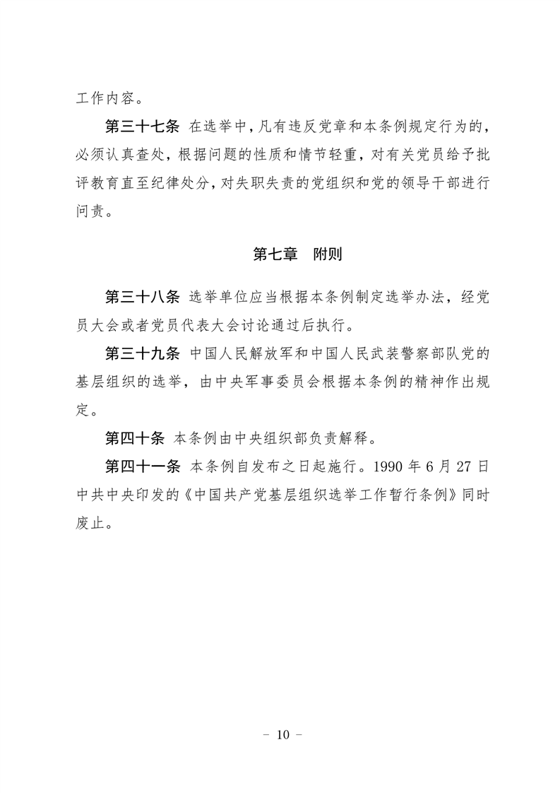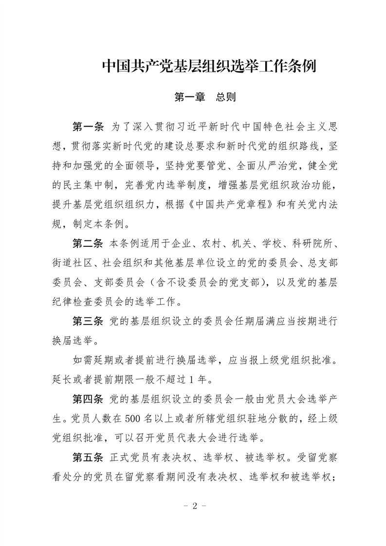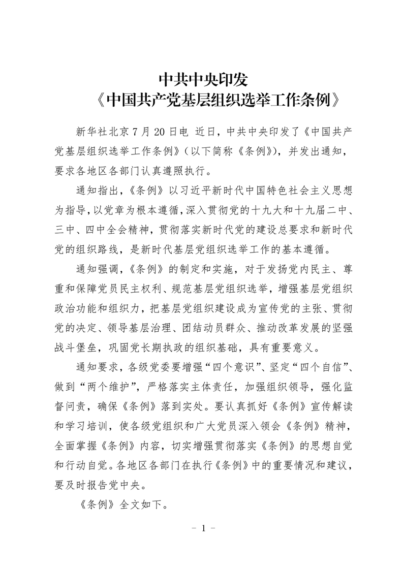 中共中央印发《中国共产党基层组织选举工作条例》
